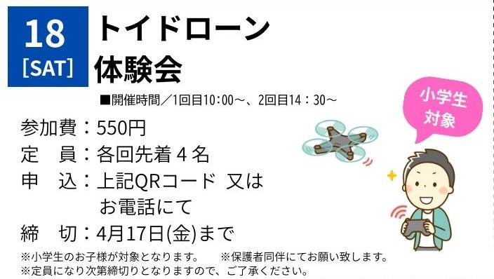 おもちゃのドローンの体験会を開催いたします!