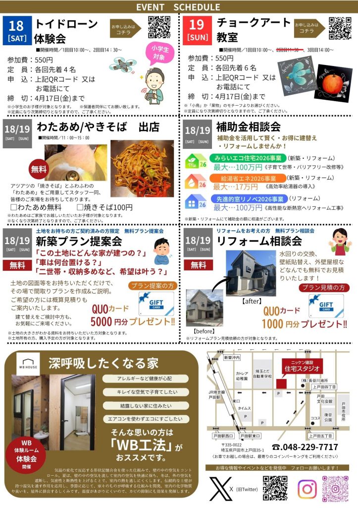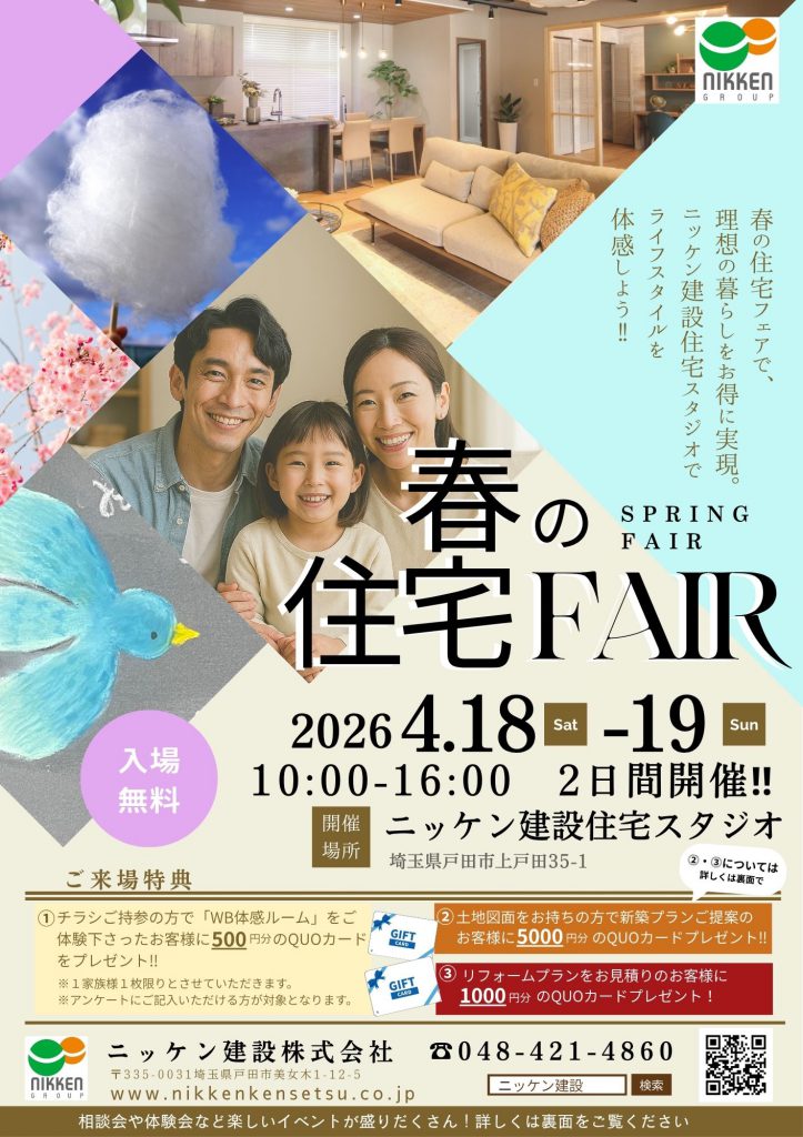 4月18日(土)・19日(日) ニッケン建設住宅スタジオにて春の住宅フェアを開催いたします。